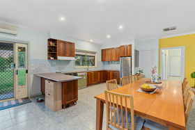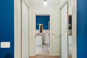 The main bedroom features a walk-in robe, ensuite, and TV and phone connection points. The remaining bedrooms are fitted with built-in robes and ceiling fans, ensuring year-round comfort. Climate control is comprehensive, with ducted evaporative cooling, a split-system unit, the Coonara heater, and an additional gas heater.