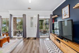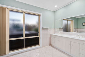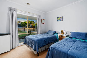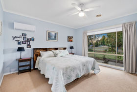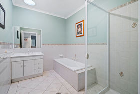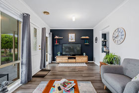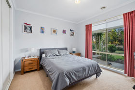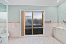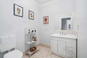 The home comprises three generously sized bedrooms, including a spacious master suite complete with ensuite and walk-in robe, while the remaining two bedrooms feature built-in robes. A well-appointed central bathroom includes a bath, shower recess and vanity, complemented by a separate toilet with its own vanity for added convenience.