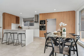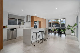 Immerse yourself in the bright and welcoming ambiance of the open-plan living and dining area, complemented by contemporary tiled floors. The heart of this home is undoubtedly the stylishly renovated kitchen, equipped with top-of-the-line induction cooking, sleek stone benchtops, and modern stainless steel appliances.